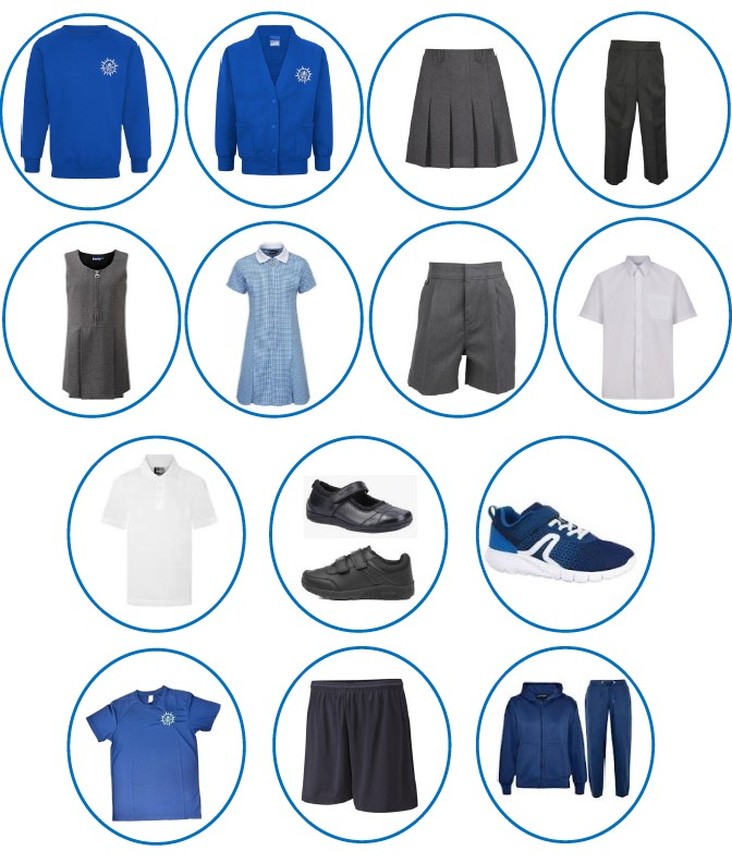 Our school uniform imbues children with a sense of pride and belonging. The school colours are royal blue and grey and the school logo was designed by our pupils. All children are expected to wear school uniform and we are grateful for your ongoing support in this matter.