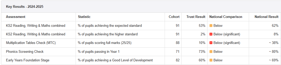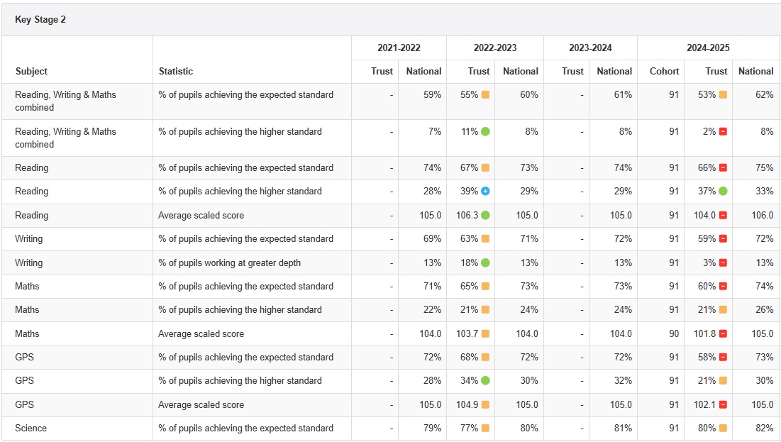 Below is a comparative report that shows the school’s KS2 results for this year against the national KS2 results for last year.